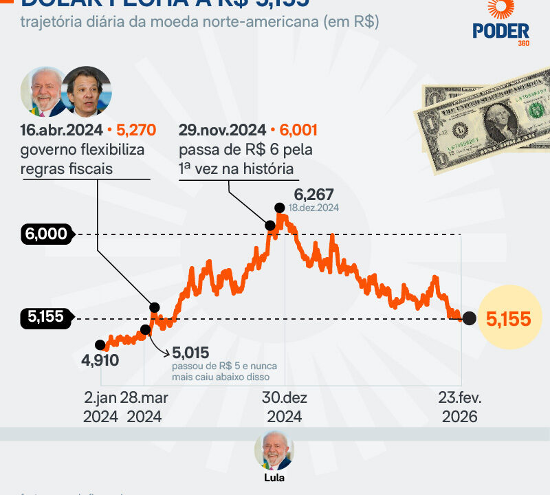 Dólar cai 0,14%; Bolsa registra queda de 0,80% Geral Dólar cai 0,14%; Bolsa registra queda de 0,80% RealRadioTvBrasil fevereiro 23, 2026
