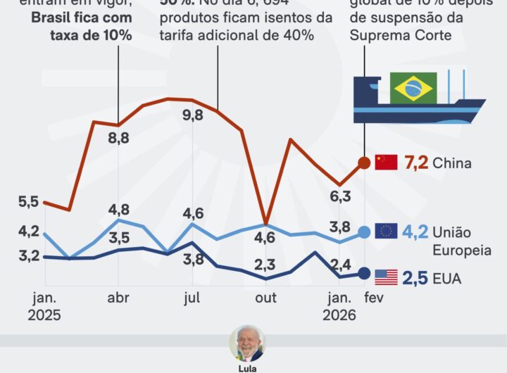 Com tarifas dos EUA, China e UE ampliam comércio com Brasil 4 min read Geral Com tarifas dos EUA, China e UE ampliam comércio com Brasil RealRadioTvBrasil março 10, 2026