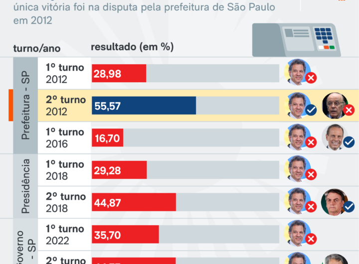 Haddad só venceu uma das 4 eleições que concorreu 2 min read Geral Haddad só venceu uma das 4 eleições que concorreu RealRadioTvBrasil março 20, 2026