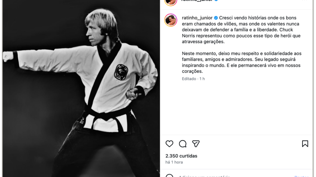 Políticos lamentam morte de Chuck Norris: “Lenda” 2 min read Geral Políticos lamentam morte de Chuck Norris: “Lenda” RealRadioTvBrasil março 20, 2026