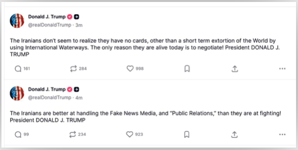 A única razão dos iranianos estarem vivos é para negociar, diz Trump 2 min read Geral A única razão dos iranianos estarem vivos é para negociar, diz Trump RealRadioTvBrasil abril 10, 2026