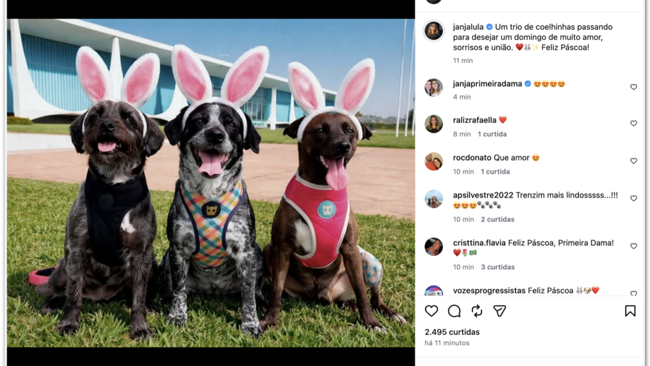 Janja celebra a Páscoa com cachorras fantasiadas de coelhinhas 1 min read Geral Janja celebra a Páscoa com cachorras fantasiadas de coelhinhas RealRadioTvBrasil abril 5, 2026