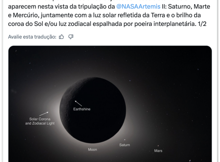 Nasa divulga foto de Marte, Saturno e Mercúrio vistos da Artemis 2 2 min read Geral Nasa divulga foto de Marte, Saturno e Mercúrio vistos da Artemis 2 RealRadioTvBrasil abril 10, 2026