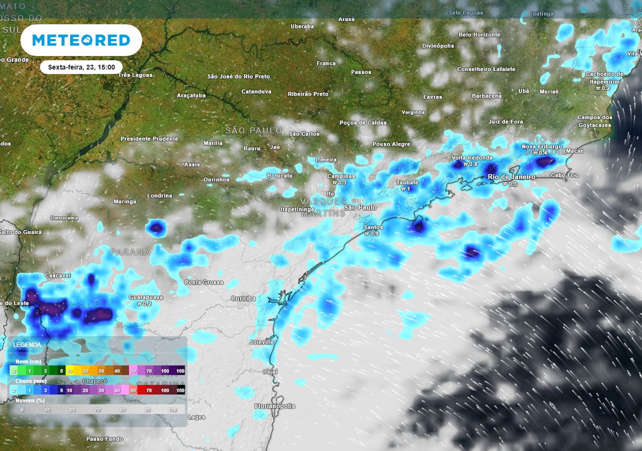 Além de São Paulo e Paraná, o Rio de Janeiro (especialmente sul fluminense e região metropolitana) e Santa Catarina (praticamente todo o estado) também registrarão chuvas, com os maiores potenciais para transtornos se localizando em municípios mais próximos do litoral.