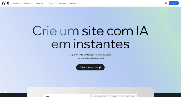 O Wix é um excelente exemplo de plataforma que atende a todos esses critérios. Ele oferece um criador de sites com IA completo que abrange desde o planejamento até a gestão pós-lançamento, incluindo funcionalidades intuitivas e poderosas que colocam o controle na mão do usuário.