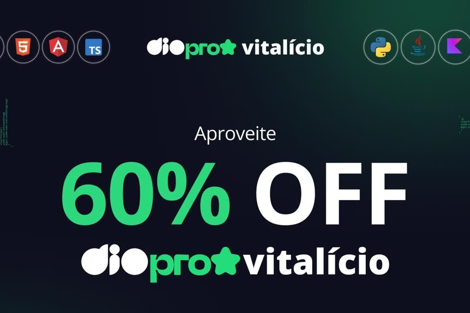 Seja para quem deseja uma nova formação, quer migrar de área ou apenas aprimorar habilidades, uma excelente opção é investir em cursos como o DIO Pro, que atualmente está com 60% de desconto na assinatura vitalícia.