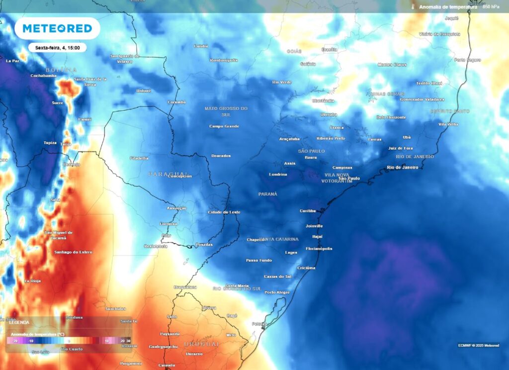 A previsão é de que as temperaturas vão permanecer baixas também nos próximos dias, mesmo com a diminuição da intensidade da massa de ar polar. Áreas do norte do Rio Grande do Sul, Santa Catarina e alguns pontos do Paraná têm riscos de geadas nesta sexta-feira (4).
