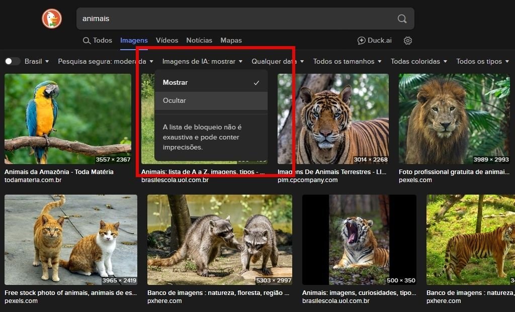 Como fazer busca por imagens sem resultados de IA no DuckDuckGo