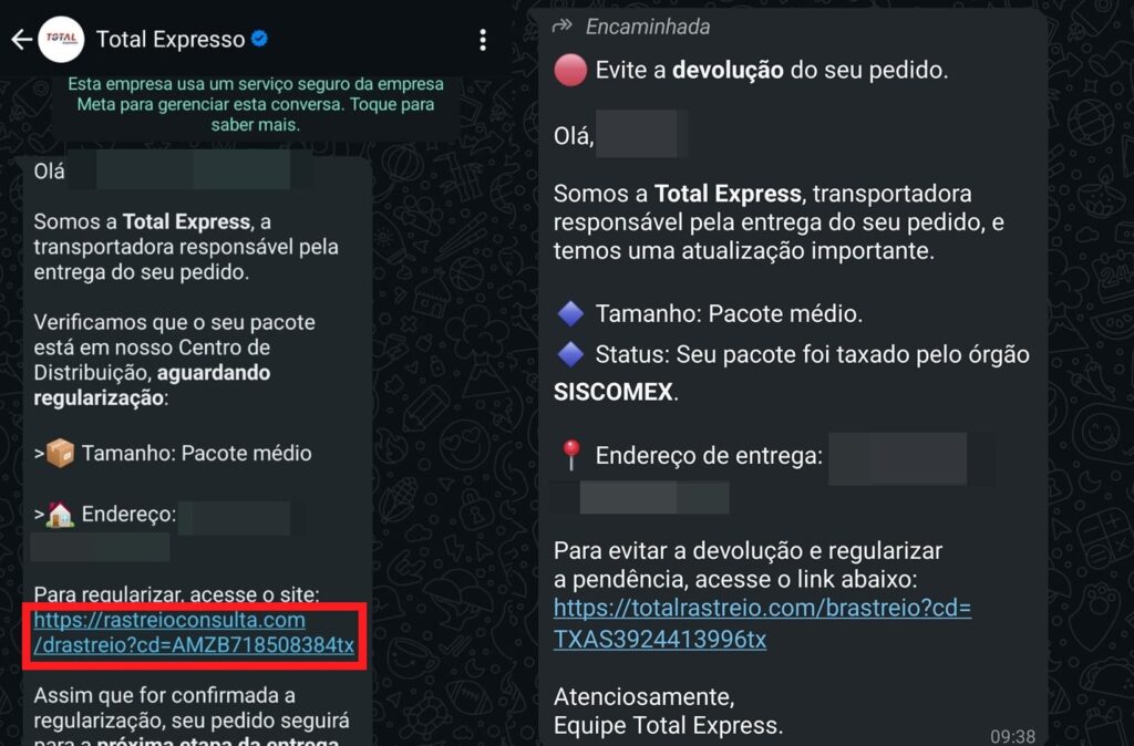 Membros da redação do TecMundo chegaram a receber mensagens deste tipo, que incluíram links referenciando a Amazon na URL, empresa que utiliza os serviços da Total Express. Nesse contexto, o caso ocorre pouco menos de uma semana após o Prime Day, que costuma receber um volume maior de compras na plataforma – e dessa maneira, pode “fisgar” usuários que realmente realizaram alguma compra.