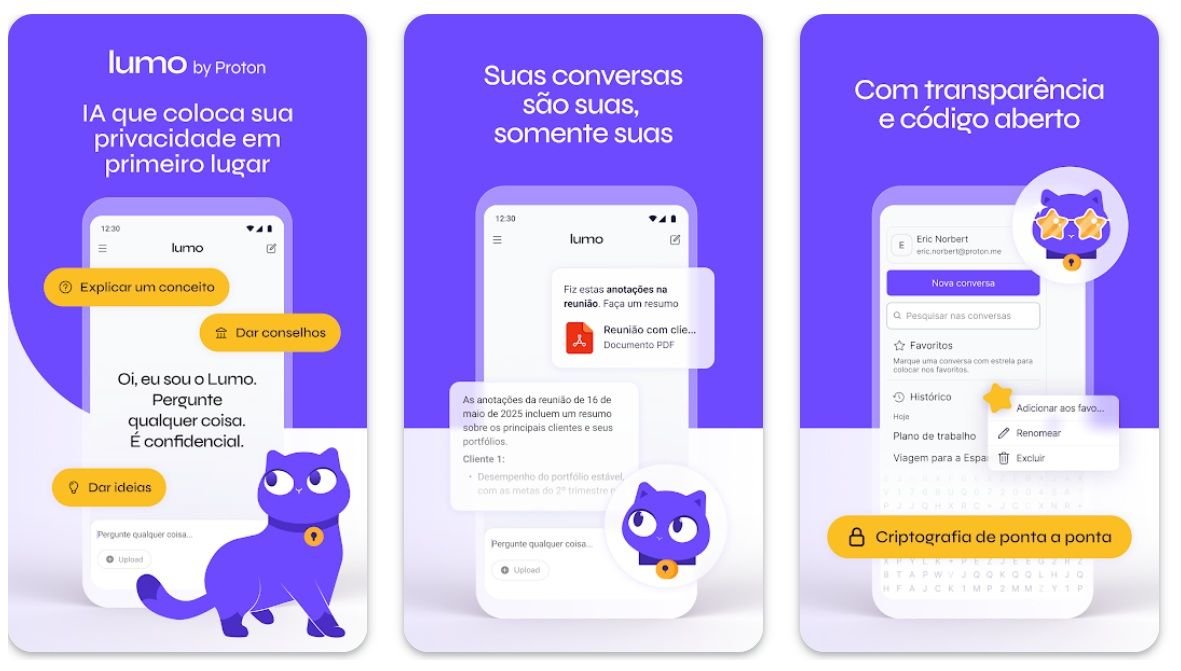 - A Proton garante que o Lumo não utiliza os dados compartilhados pelo usuário para treinar o seu próprio modelo de linguagem, ao contrário das concorrentes;