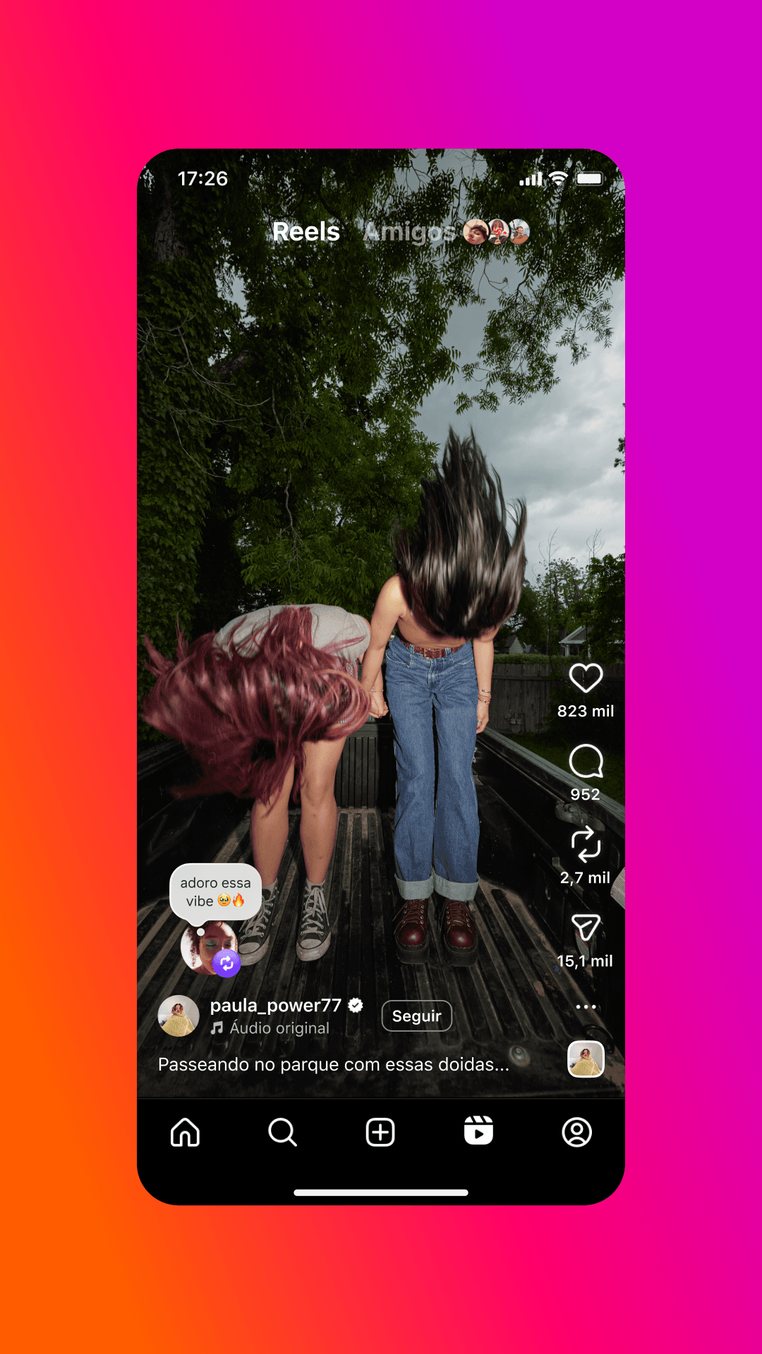 Outra novidade é a aba “Amigos”, um feed personalizado com conteúdos que seus amigos curtiram, comentaram, repostaram ou criaram. Ao contrário do feed tradicional, essa seção não traz recomendações aleatórias, sendo composta exclusivamente por interações de perfis que você segue.