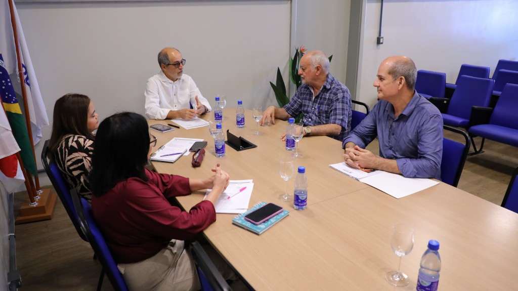 O chefe de Divisão de Planejamento, Marcéu Macedo da Costa e Silva, e o assessor técnico Luis Fernando, ambos da Adaf, foram recebidos pelo diretor técnico científico da Fapeam, Hedinaldo Lima, e pelas chefes de departamento de Acompanhamento e Avaliação (Deac/Fapeam), Ana Claúdia Maquiné e de Difusão do Conhecimento (Decon/Fapeam), Marlúcia Seixas.