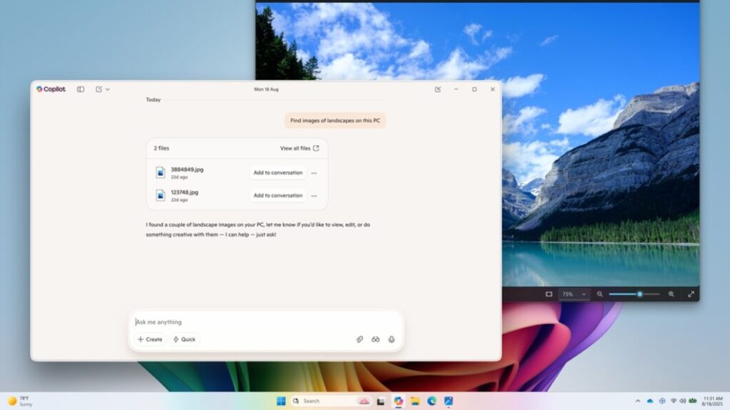 A própria companhia dá um exemplo: você pode pedir para o Copilot “encontrar imagens de pontes ao pôr do sol no meu PC”. Outro: você pode instruir o Copilot a “encontrar o arquivo com a receita de tostada de frango”.