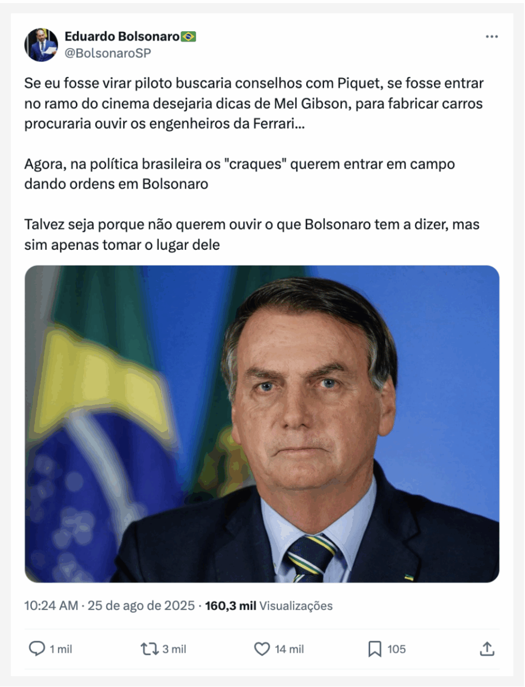 Eis a publicação de Eduardo Bolsonaro com a indireta aos governadores.
