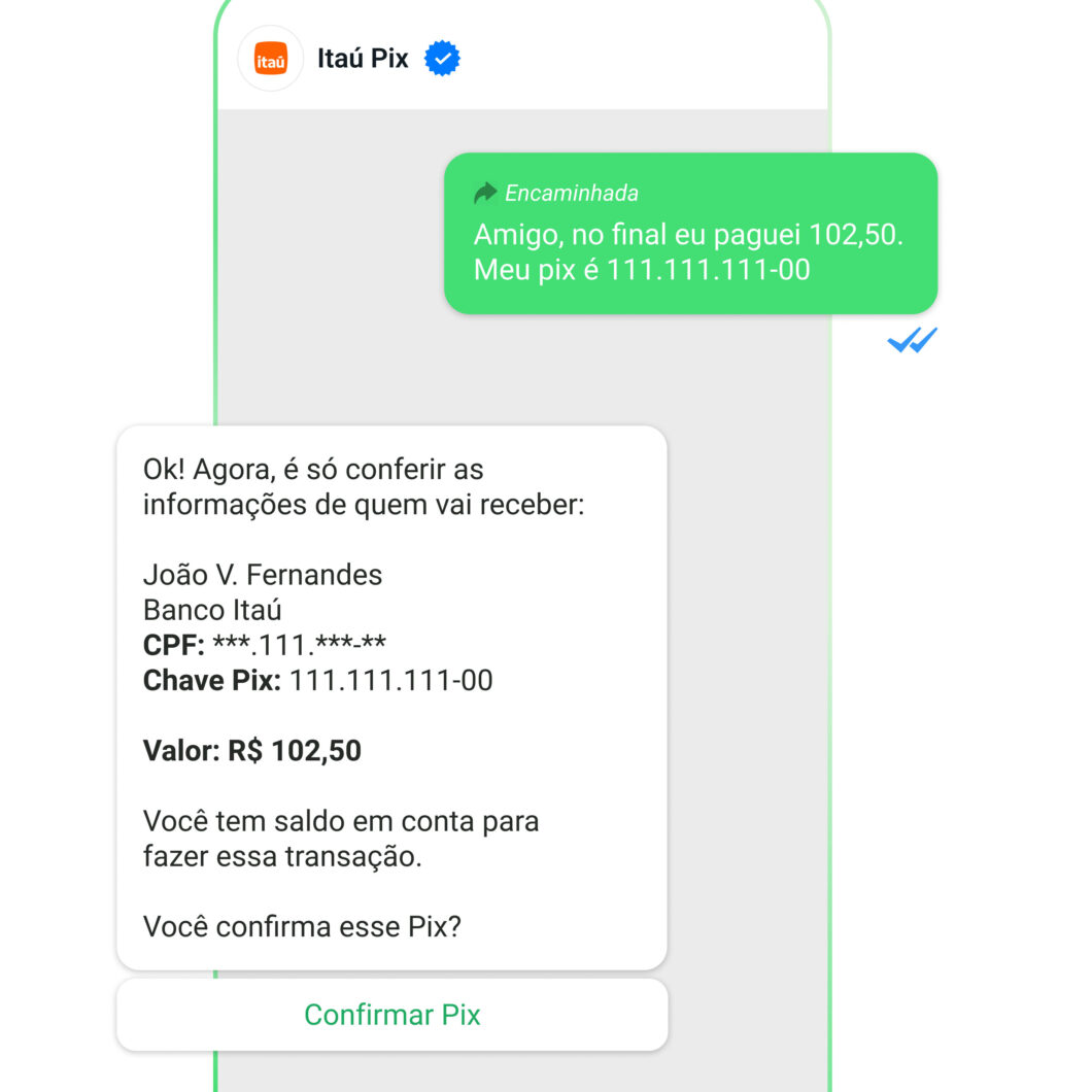 Exclusivo: Itaú libera Pix via WhatsApp para todos os clientes