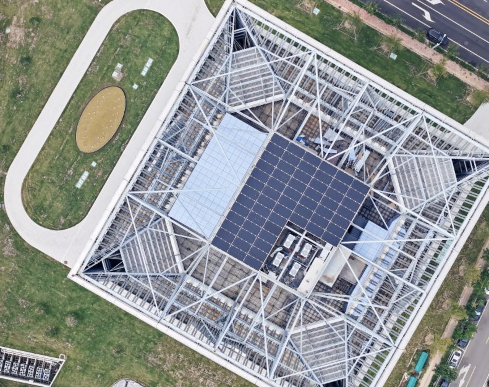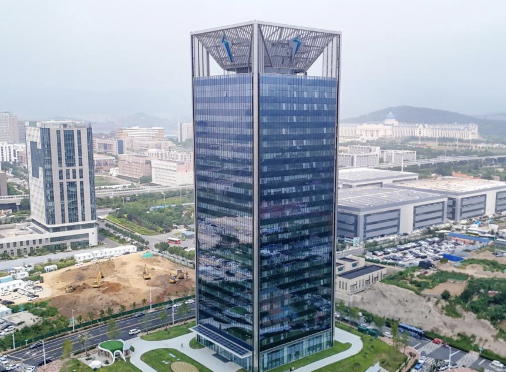O edifício está localizado na província de Shandong –a 400 km de Pequim. A estrutura elimina completamente as emissões de carbono em suas operações e funciona à base de energia limpa.