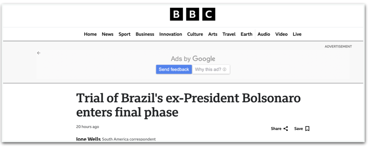 A rede britânica BBC também destaca que a causa de Bolsonaro foi adotada pelo presidente dos Estados Unidos, informando que Trump usou o caso como justificativa para impor tarifas de 50% sobre produtos brasileiros e sancionar juízes do STF que lideram o processo. A reportagem retoma os principais acontecimentos desde as eleições de 2023, incluindo os atos de 8 de Janeiro, e reúne argumentos da acusação e da defesa. Diz ainda que Bolsonaro vê como seu principal oponente o ministro Alexandre de Moraes e explica os procedimentos do processo.