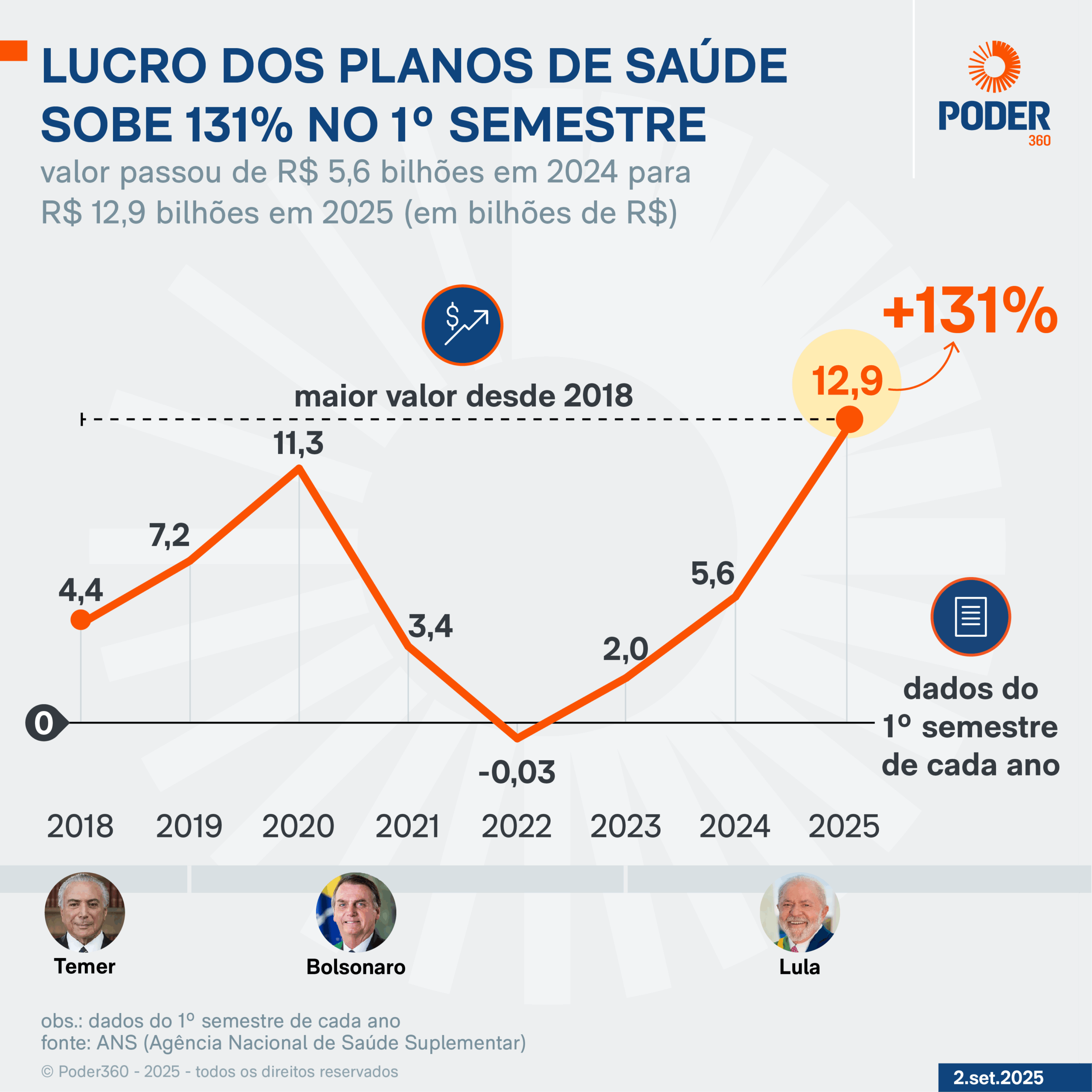 As operadoras médico-hospitalares são o principal segmento do setor e juntas atingiram um lucro líquido de R$ 12,4 bilhões no agregado, fortemente impulsionado pelo aumento do resultado operacional e pela contribuição do resultado financeiro.
