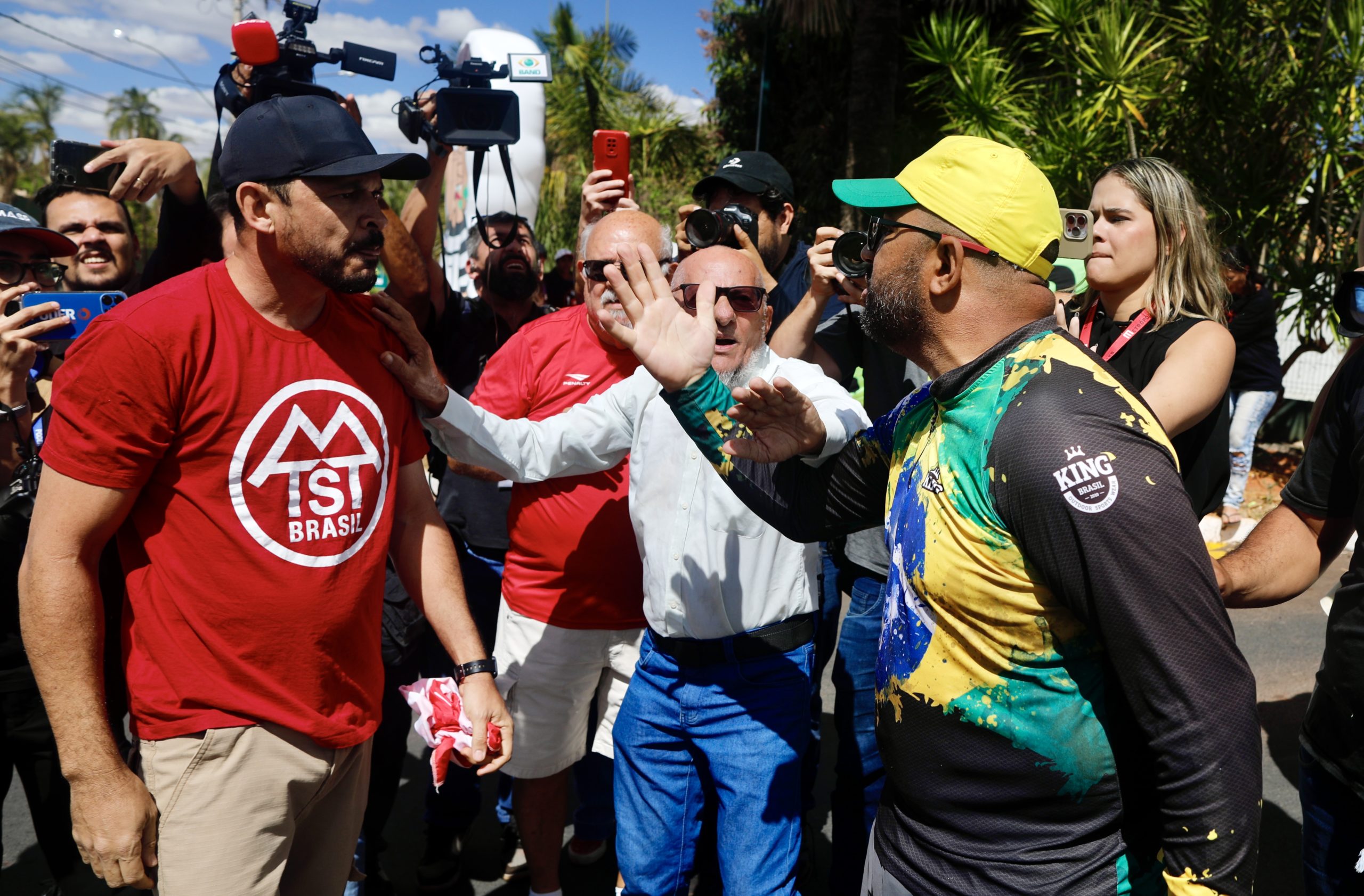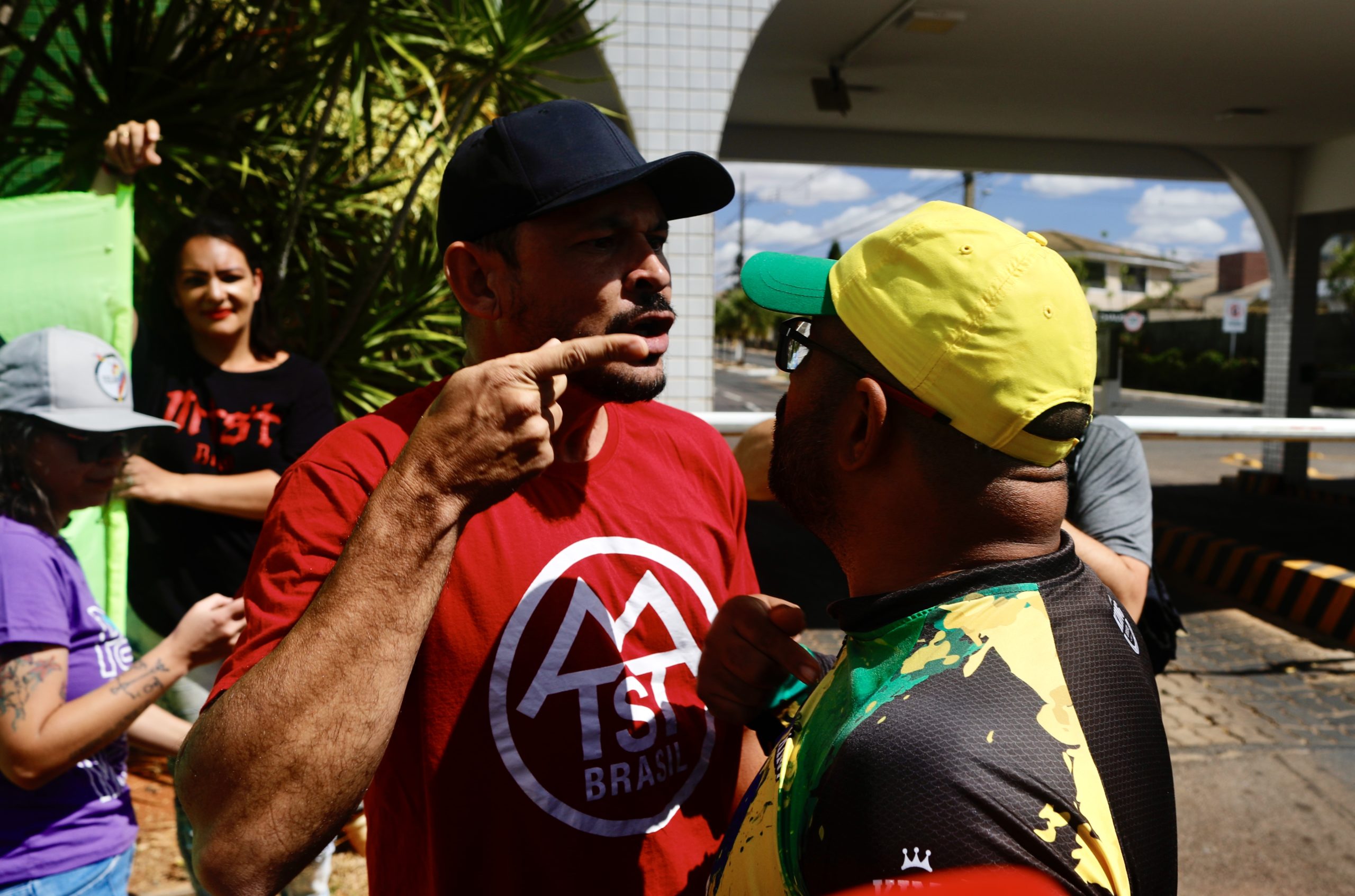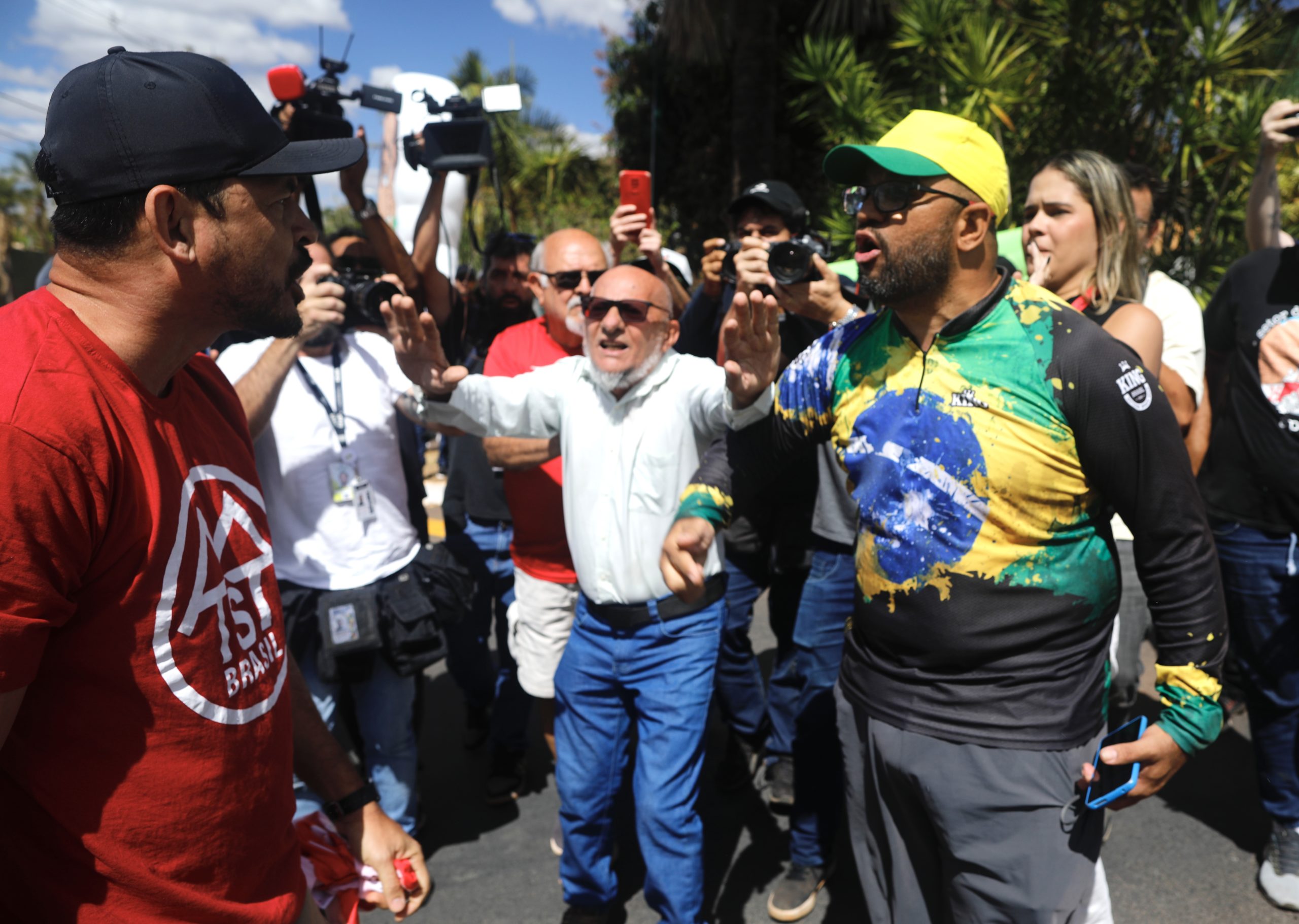 Apoiadores e críticos de Bolsonaro discutem em frente ao condomínio