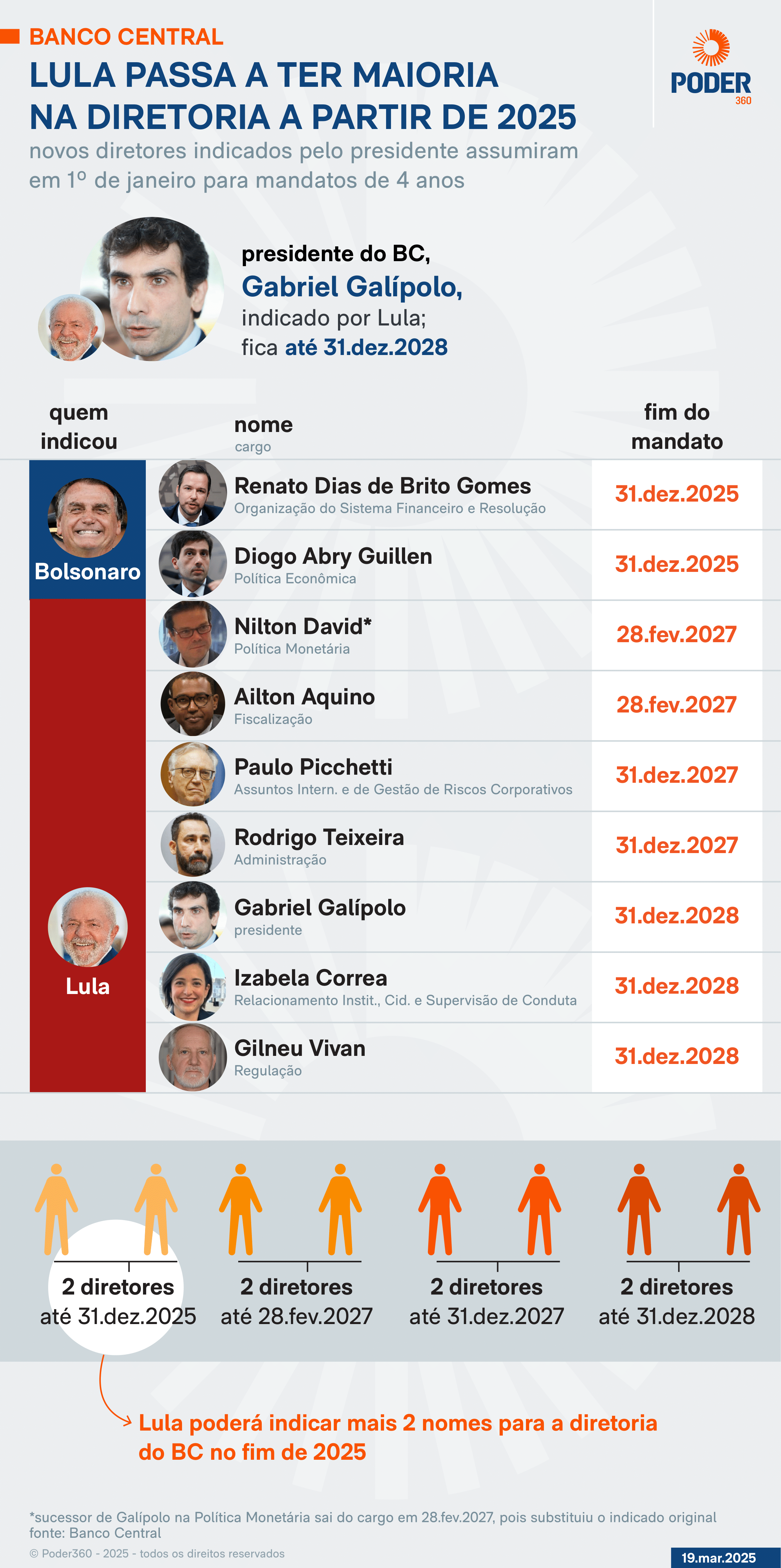 O presidente e os diretores do Banco Central têm mandatos de 4 anos desde a sanção da lei de autonomia, em 2021. A aprovação na Câmara foi o 1º grande feito do deputado Arthur Lira (PP-AL) na Presidência da Casa.