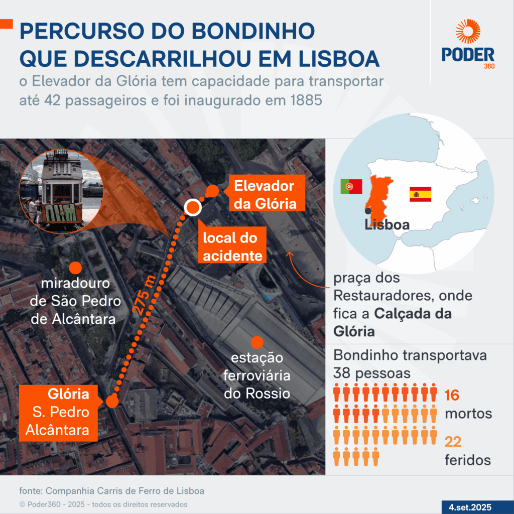 Além disso, um brasileiro estava entre as pessoas que ficaram feridas no acidente. A informação foi confirmada pelo Consulado do Brasil na capital portuguesa ao Poder360. Com ferimentos leves, ele recebeu atendimento hospitalar e foi liberado. A identidade do brasileiro não foi divulgada.