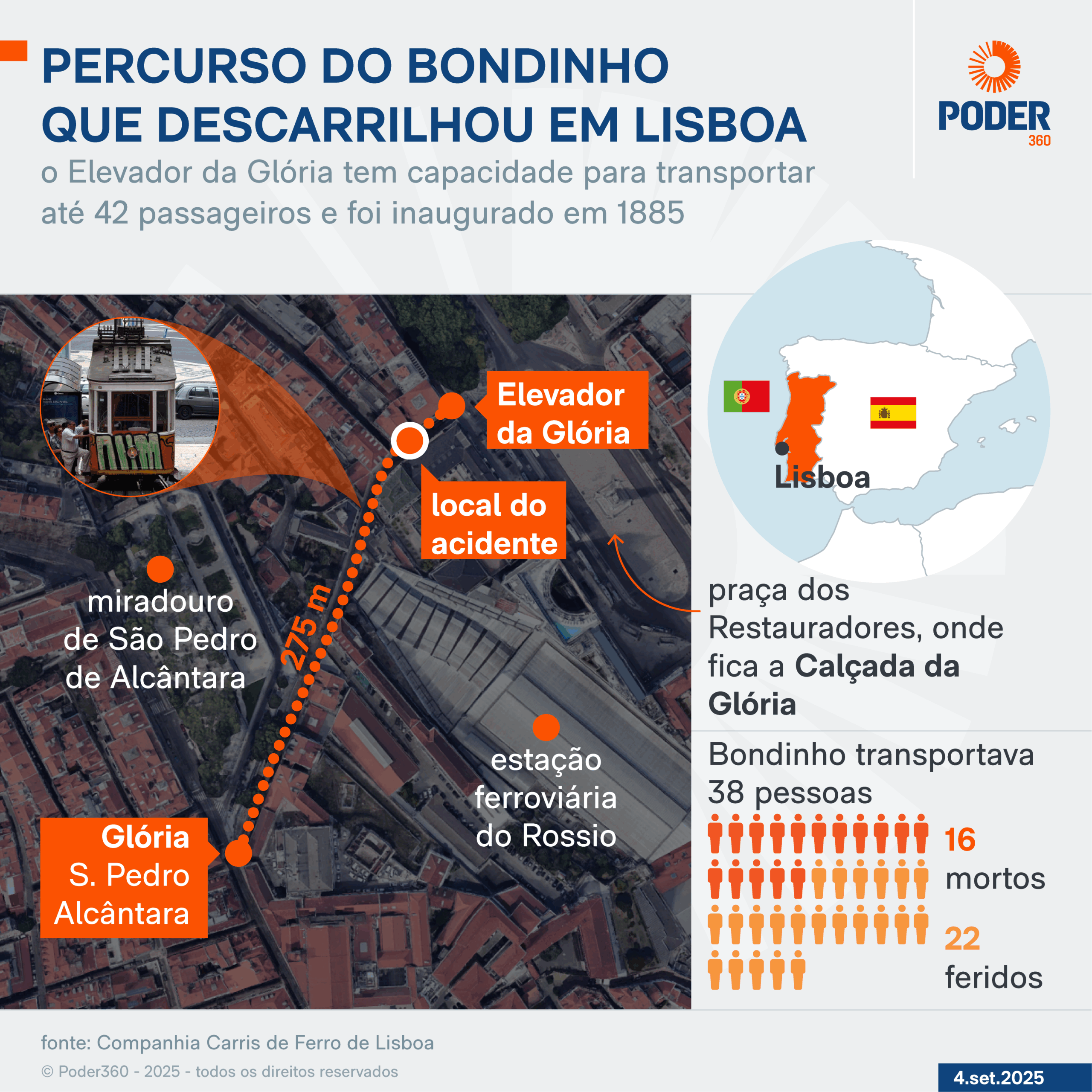 Um brasileiro está entre as pessoas que ficaram feridas no acidente. A informação foi confirmada pelo Consulado do Brasil na capital portuguesa ao Poder360.
