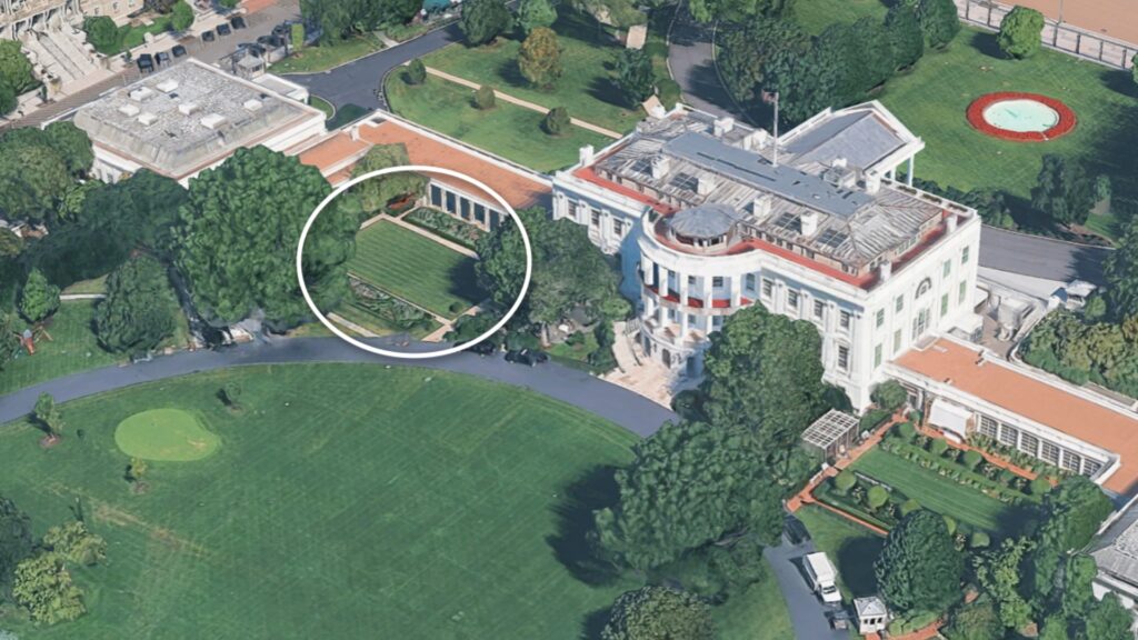 Em fevereiro de 2025, dias depois de tomar posse, Trump afirmou que faria uma reforma no local. Disse que não era possível receber os jornalistas no jardim e que as mulheres reclamavam: “Elas ficam malucas. A grama estava molhada. Os saltos delas estavam atravessando a grama, afundando uns 10 centímetros”.