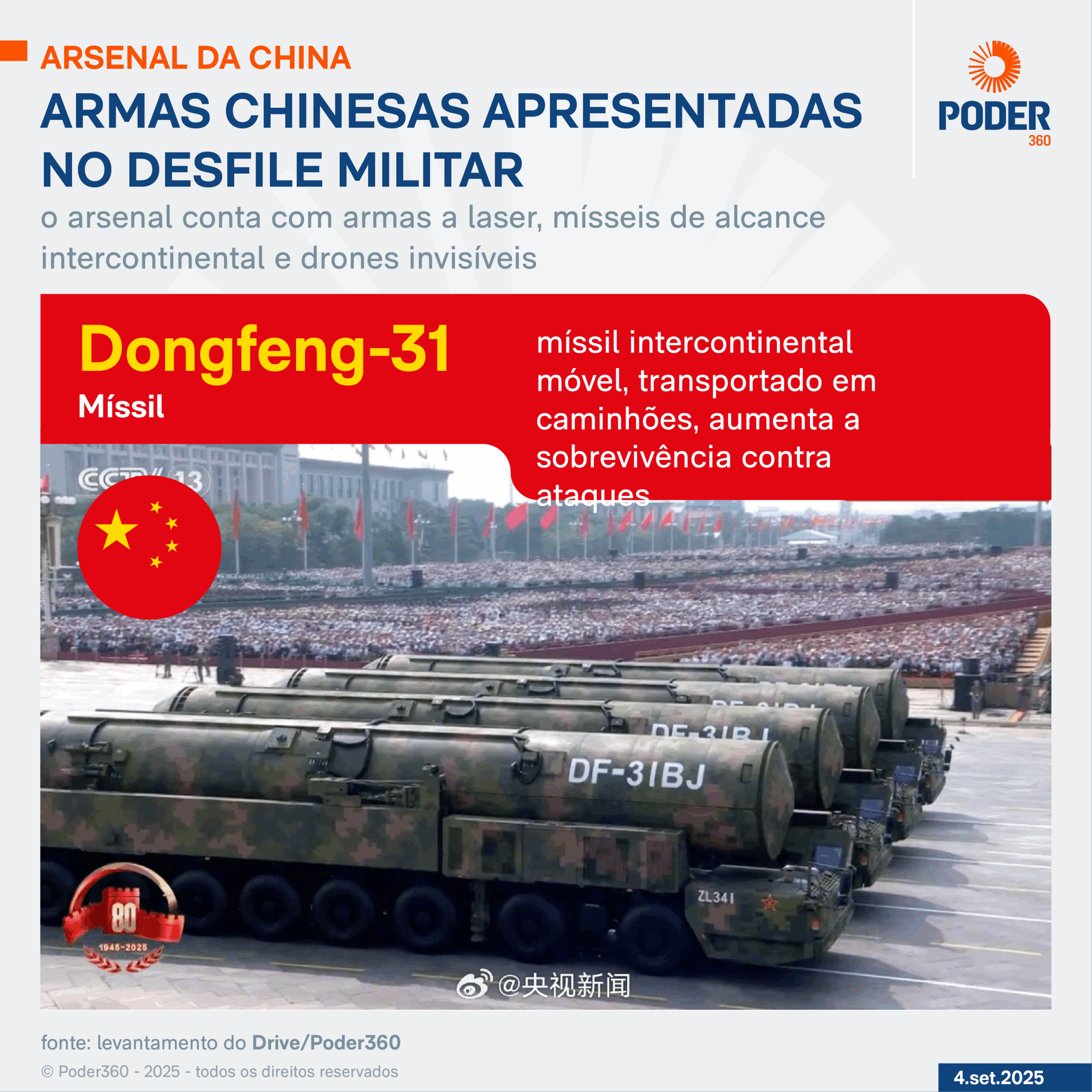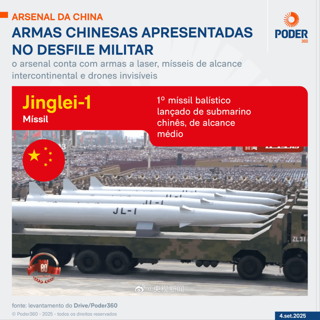 O evento teve repercussão extra por exibir armamentos de última geração, incluindo componentes da tríade nuclear chinesa –JuLang-3,JingLei-1, DongFeng-61 e DongFang-31–, e por contar com a presença de líderes estrangeiros como Vladimir Putin, presidente da Rússia, e Kim Jong-un, líder da Coreia do Norte, que reforçaram apoio à China.
