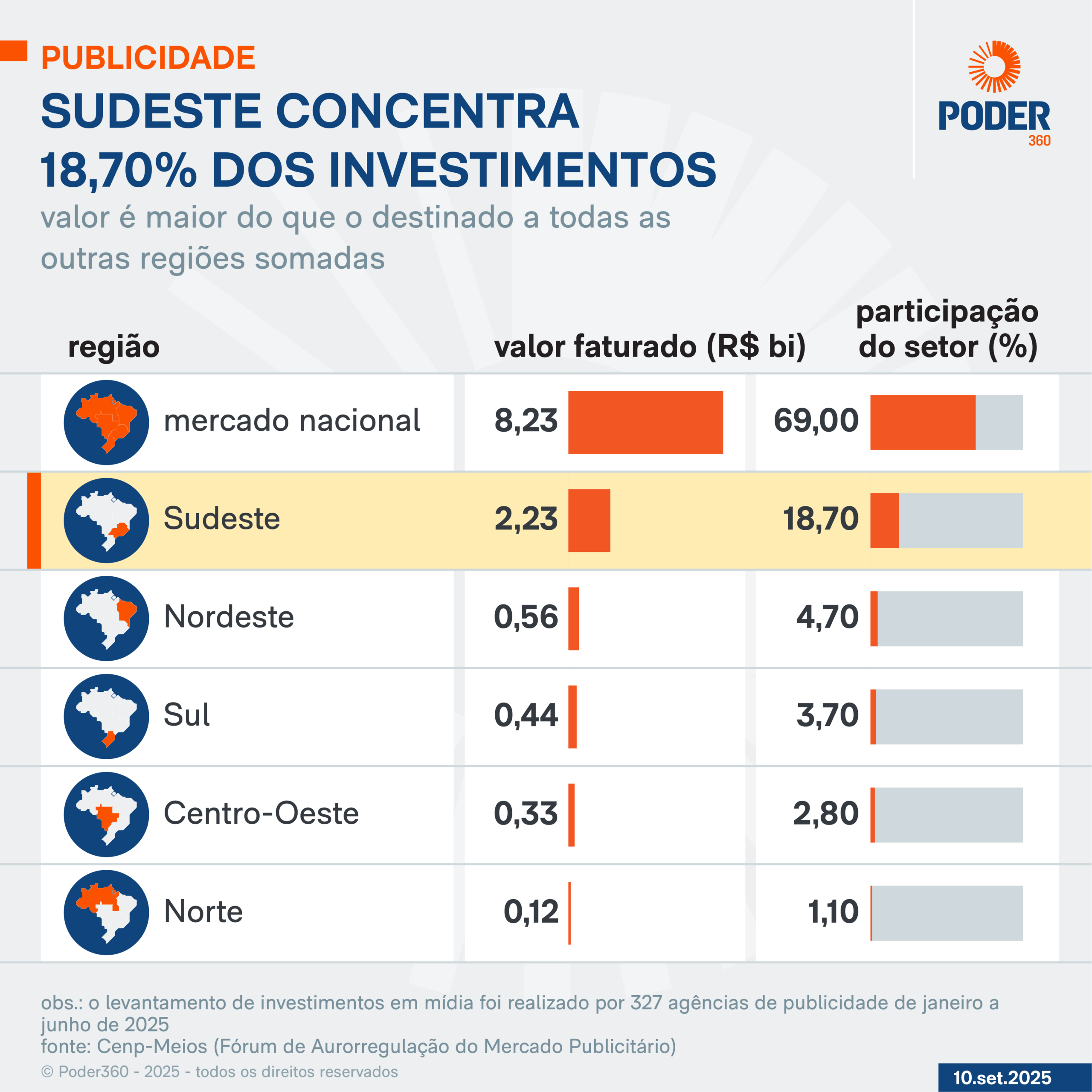 A região recebeu R$ 2,23 bilhões em investimentos publicitários no 1º semestre. O valor é maior que a soma dos montantes destinados às outras 4 regiões (R$ 1,47 bilhão).