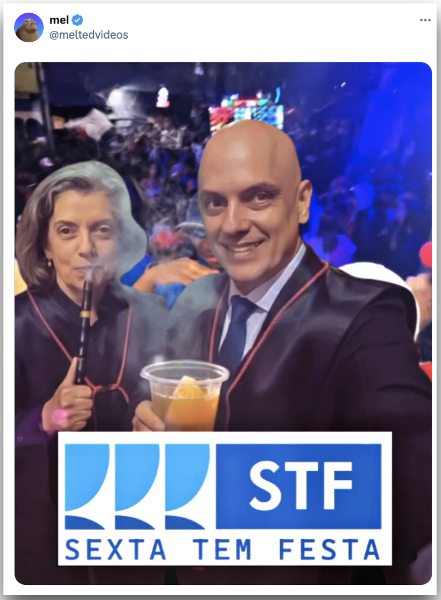 Cármen Lúcia, ministra que deu o voto que formou maioria na 1ª Turma, e Alexandre de Moraes, ministro-relator do processo, foram usados nas piadas.