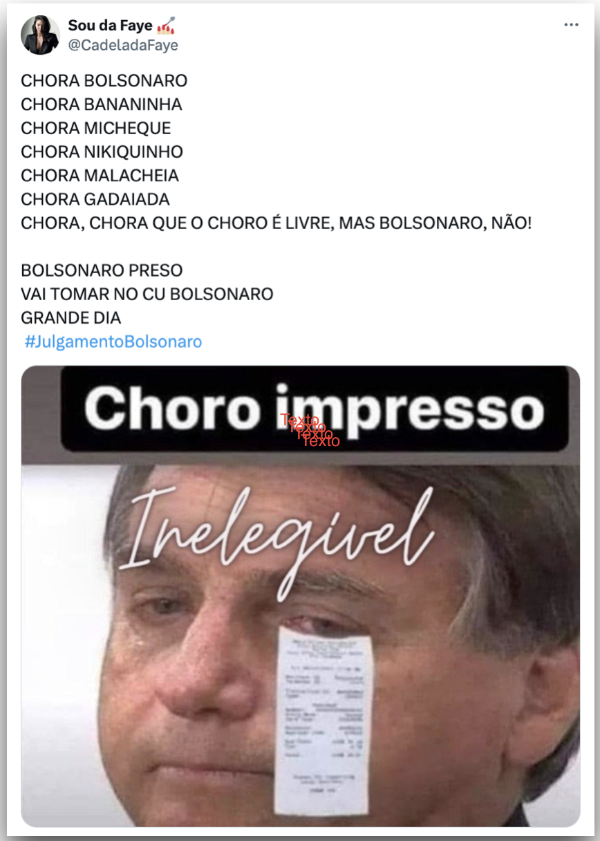 Fotos de Bolsonaro chorando em ocasiões anteriores também serviram de base para os memes, que lembraram a fixação do ex-presidente pelo voto impresso.