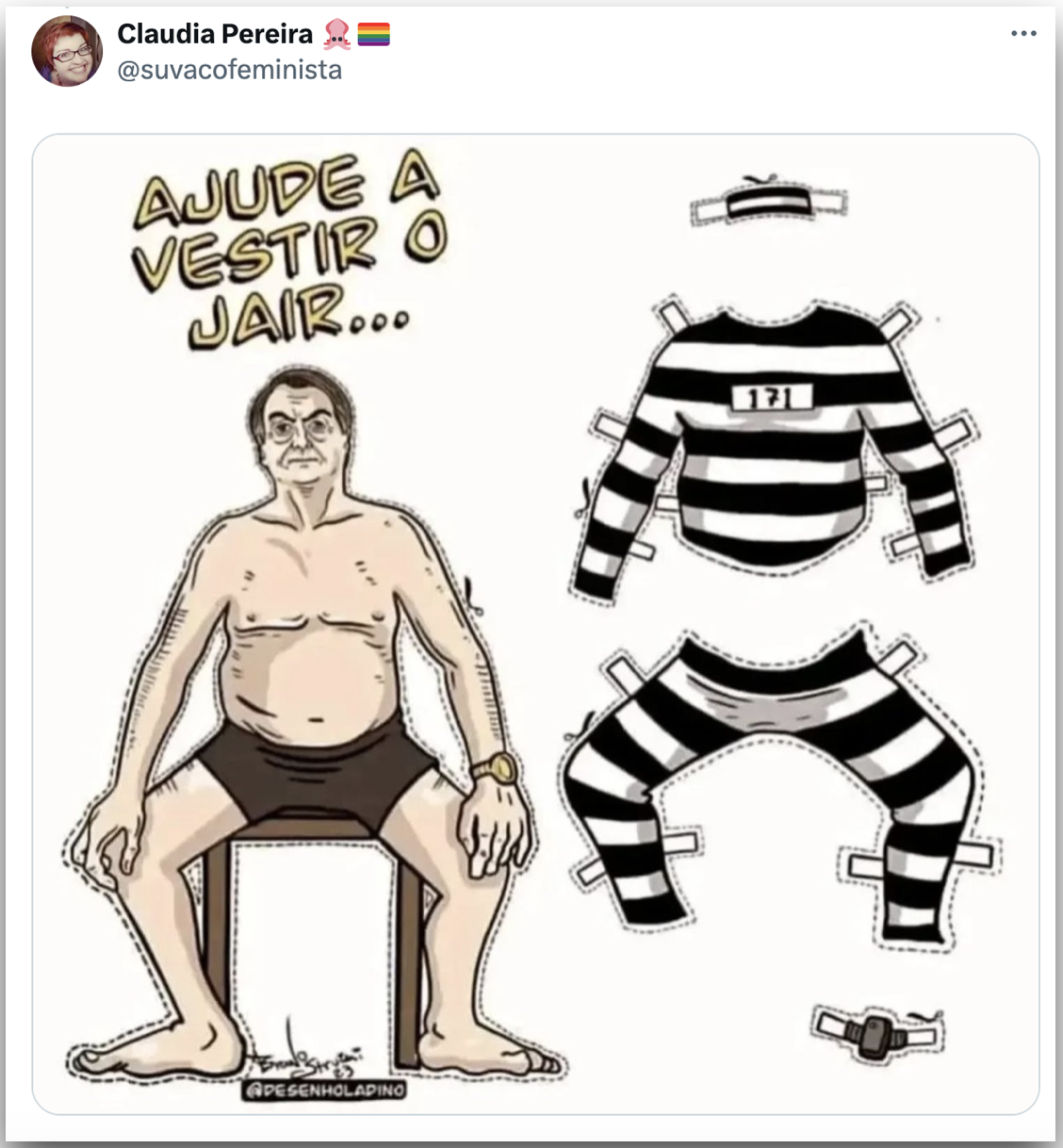 Uma usuária da rede brincou com o uniforme de presidiário.