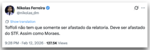 Luiz Fux foi voto vencido. O ministro votou para condenar apenas Mauro Cid e Walter Braga Netto por abolição violenta do Estado Democrático de Direito. No caso dos outros 6 réus, o magistrado decidiu pela absolvição.