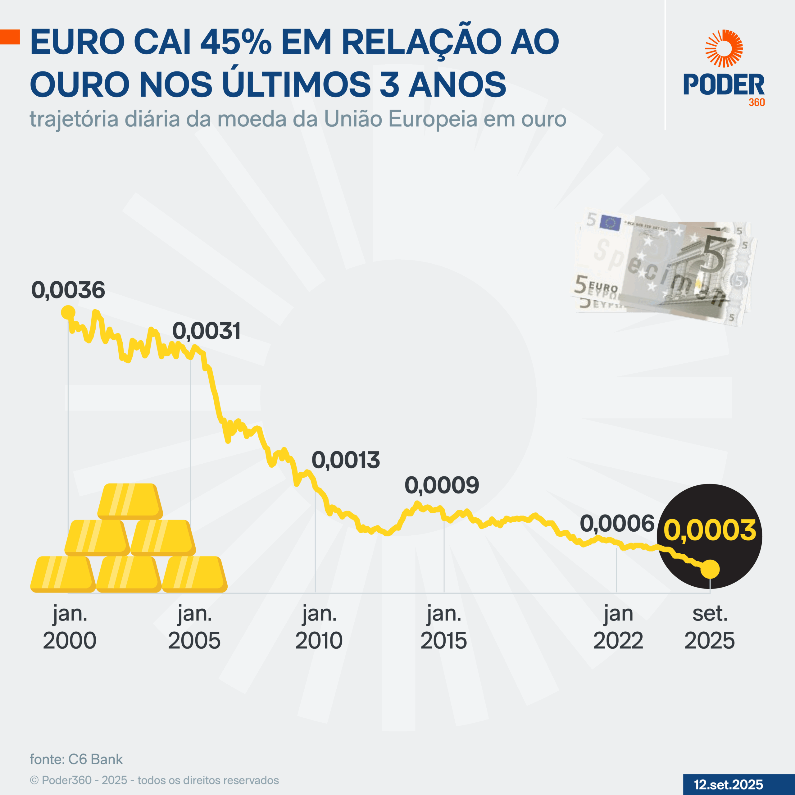 Salles também afirmou que a combinação geopolítica-econômica torna o ouro um ativo mais seguro para os países. “Alguns países, como França, Reino Unido e Estados Unidos, estão em situação fiscal bastante delicada. E esses países vão ter que aumentar ainda mais os gastos com defesa, os países da Otan [Organização do Tratado do Atlântico Norte]”, declarou.