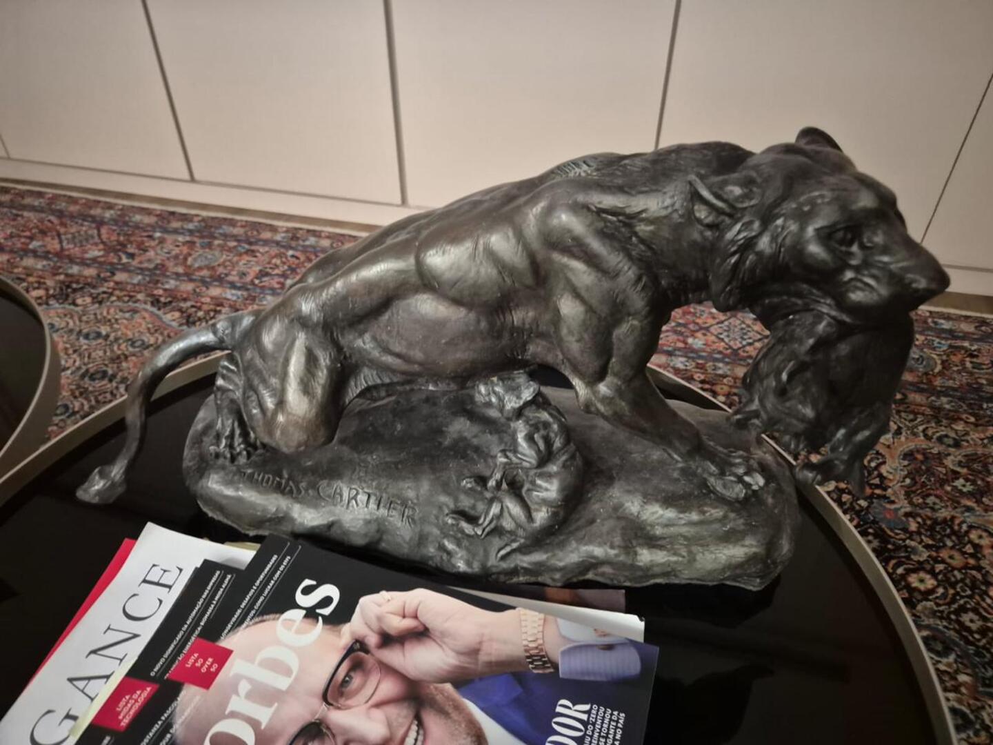 Estátua decorativa de bronze de leão foi apreendida pela PF durante a operação Cambota