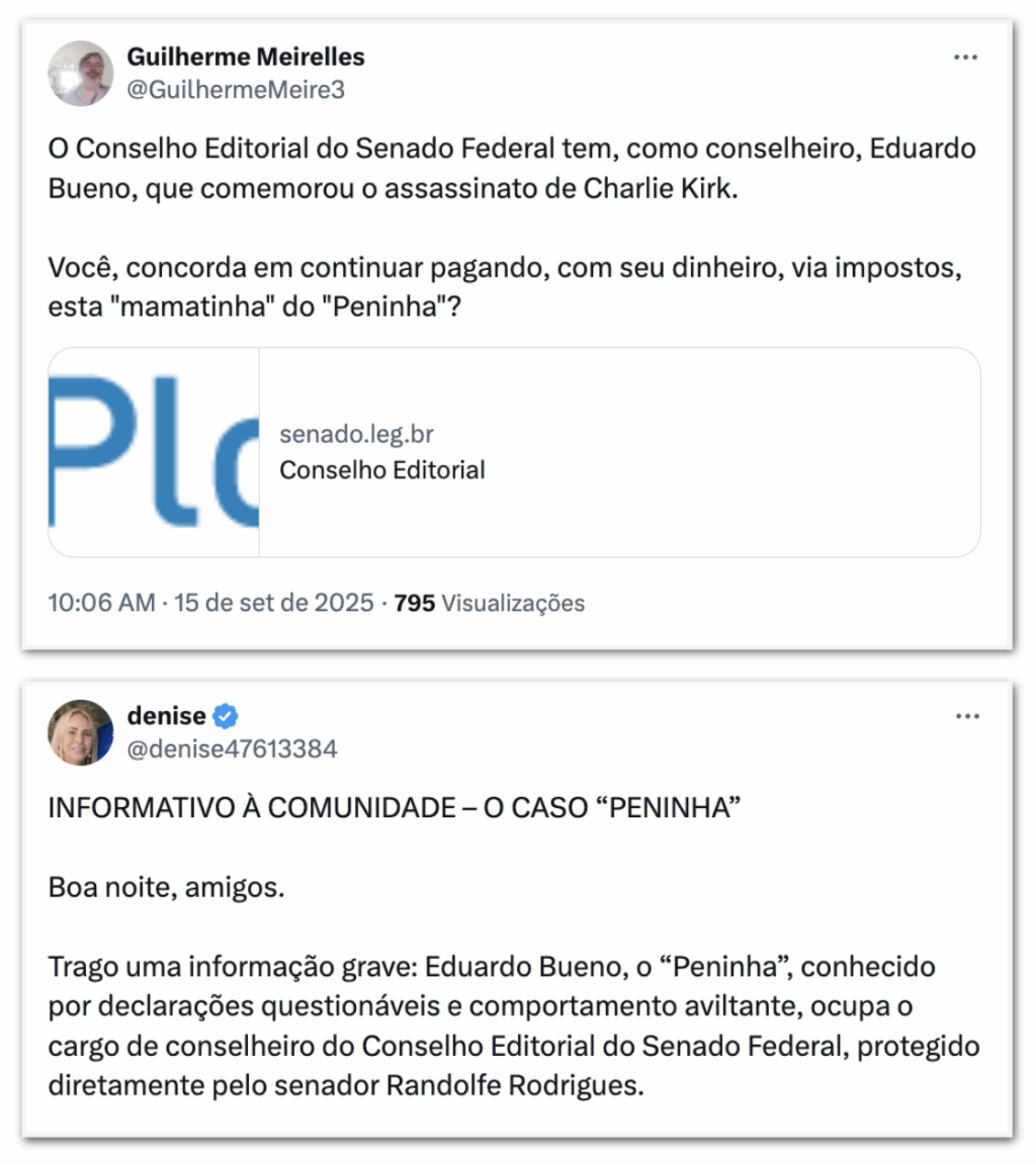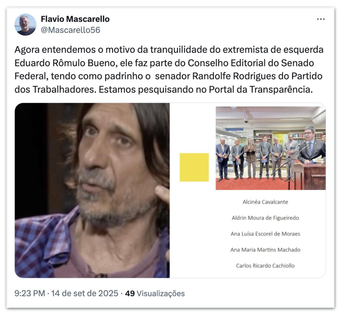 O Poder360 procurou a assessoria do Senado Federal e a de Randolfe por meio de e-mail para perguntar se gostariam de se manifestar a respeito da participação de Eduardo Bueno no conselho e das críticas nas redes sociais. Não houve resposta até a publicação desta reportagem. O texto será atualizado caso uma manifestação seja enviada a este jornal digital.