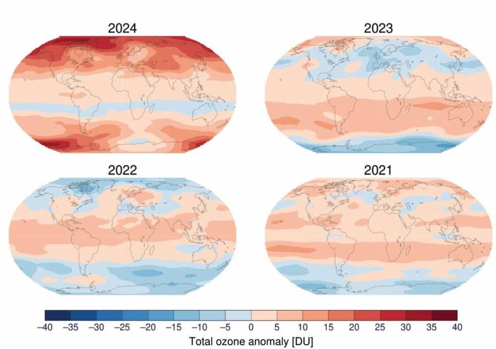 A camada de ozônio apresentou sinais robustos de recuperação em 2024, ficando acima da média em grande parte do mundo. A quantidade de ozônio atingiu alguns dos níveis mais altos em décadas na Antártica.
