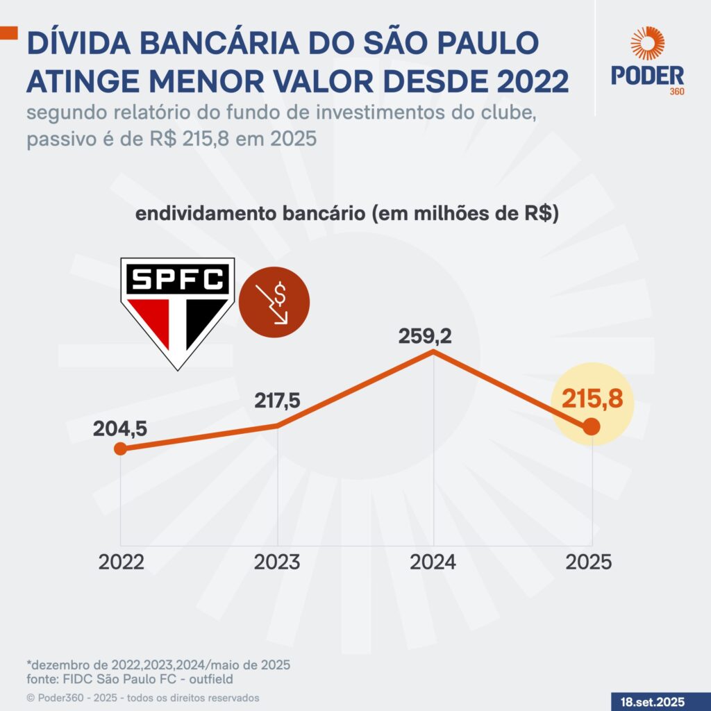 O relatório diz que o fundo não impede novas operações de crédito. Em 2025, o São Paulo contratou dívida de R$ 50,6 milhões junto ao Banco Daycoval, a CDI + 6,74% ao ano, com aprovação prévia do Comitê de Crédito do FIDC. A taxa ficou abaixo do custo médio do endividamento do clube em 2024, de CDI + 7,13% ao ano.