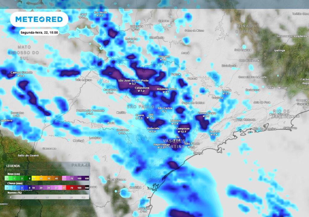 Já nesta terça-feira (23), as chuvas se dissiparão no estado, embora chuva fraca ainda possa se formar no litoral sul, na região metropolitana da capital e no Vale do Paraíba. Ainda assim, essa frente fria está marcando uma virada brusca no tempo – Já que faziam mais de três meses que São Paulo não registrava chuvas tão intensas.