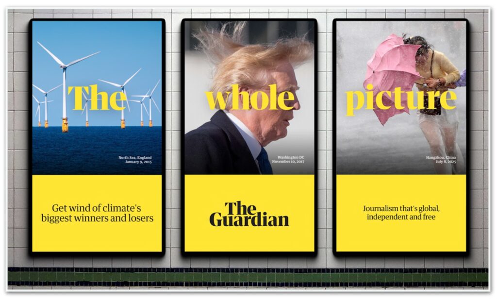 A “The Whole Picture”, que vai ser veiculada durante 4 semanas, é inspirada em uma campanha premiada do The Guardian de 1986. Conhecida como “Pontos de Vista”, a peça mostrava vários recortes de uma mesma cena, mas dizia que a verdade só pode ser compreendida quando todos os ângulos são mostrados de forma completa.