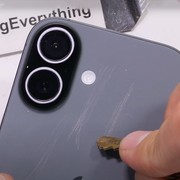 Como já é de costume em seus vídeos, Nelson decide começar a prova pelo display. Munido do mesmo vidro Ceramic Shield 2 que vemos nos outros aparelhos da linha, o modelo mais básico da Apple para este ano tem o mesmo rendimento dos seus irmãos mais caros.