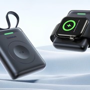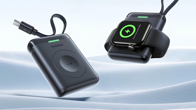Além da área de uso sem a necessidade de fios, o acessório também vem acompanhado de um cabo USB-C integrado, apesar de ser somente uma entrada. Por suportar carregamento de passagem, também é possível carregar a power bank e o relógio ao mesmo tempo.