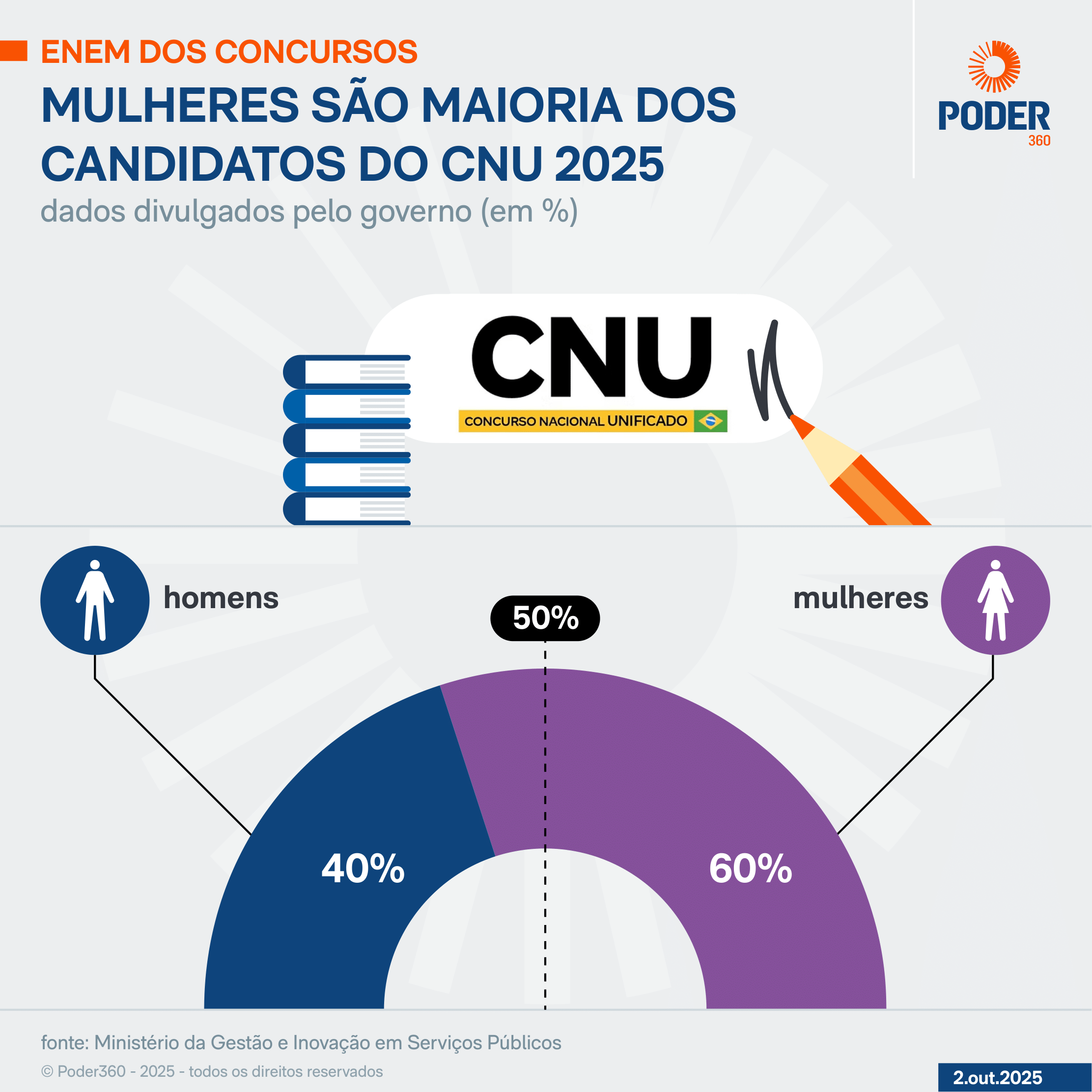 As mulheres representam 60% dos inscritos, alta em relação à primeira edição (56,2%). O CNU também mantém a reserva de cotas: 25% para pessoas negras, 5% para pessoas com deficiência, 3% para indígenas e 2% para quilombolas, além de prever ações de equidade de gênero.
