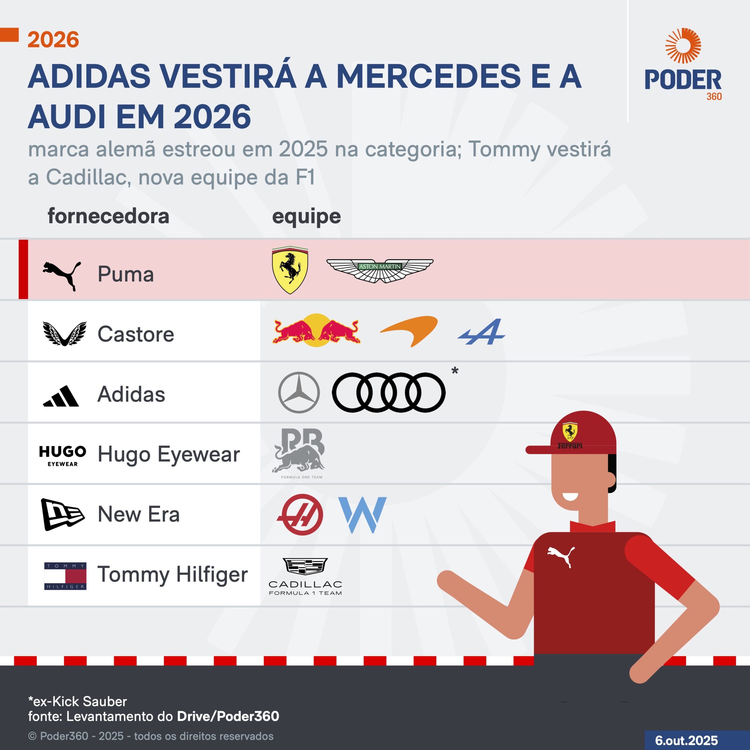 Já a equipe Kick Sauber, que tinha parceria com a Puma, mas foi comprada pela Audi em 2024, passará a competir sob o nome da montadora alemã a partir da temporada de 2026.