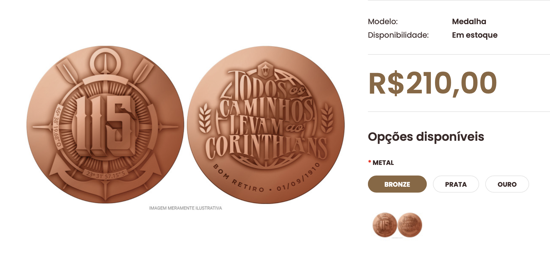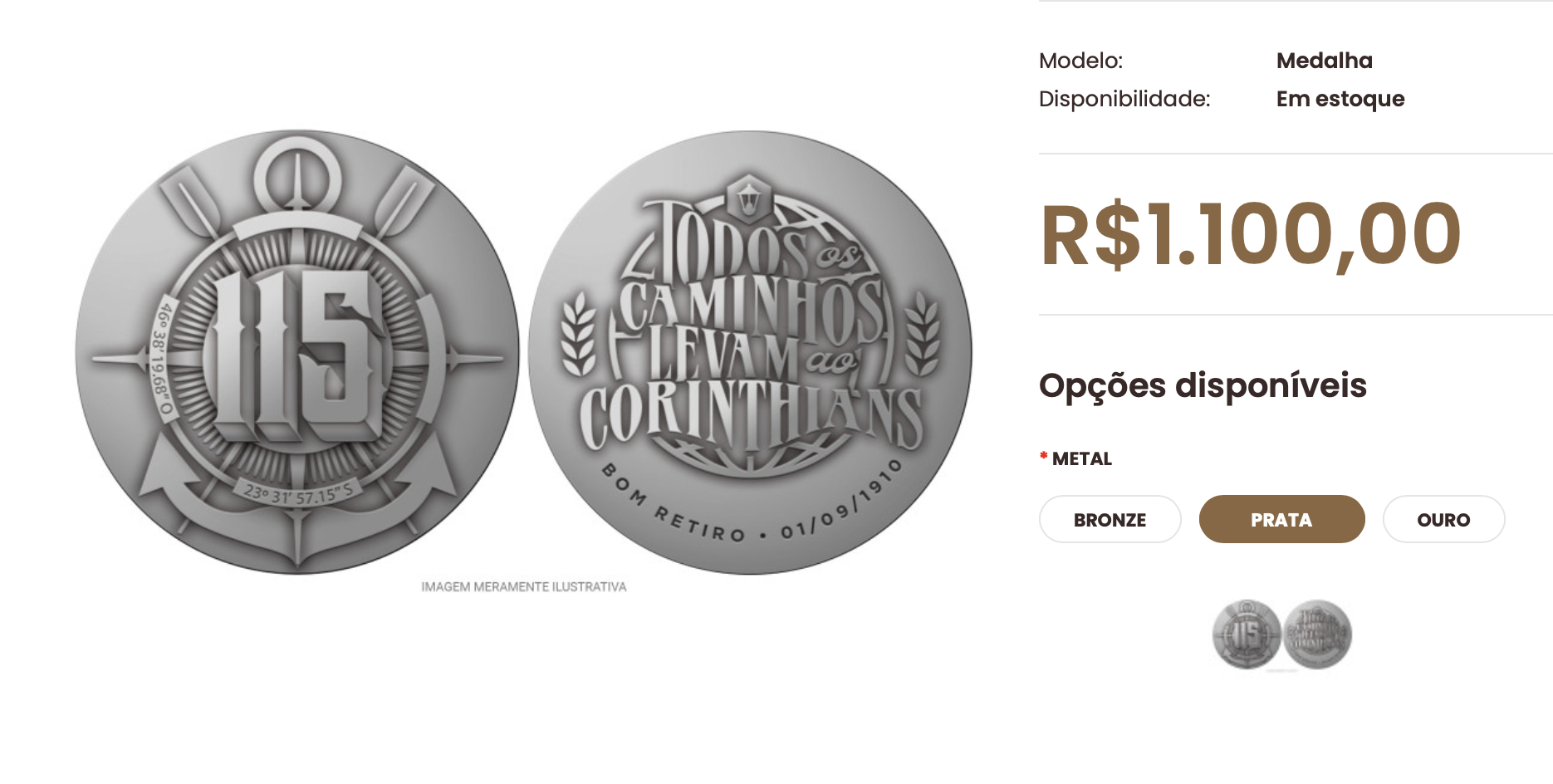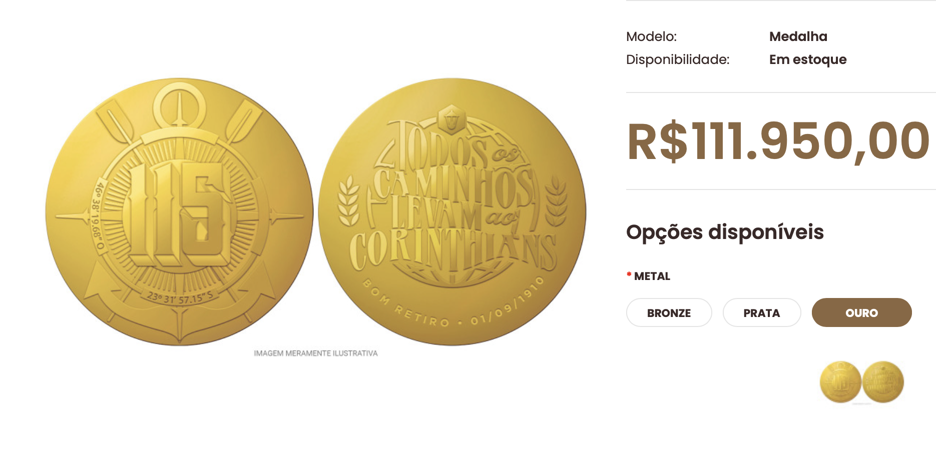A iniciativa integra as celebrações do aniversário do clube paulista, fundado em 1º de setembro de 1910 no bairro do Bom Retiro. As medalhas já podem ser adquiridas pelo site oficial da CMB, no Clube da Medalha do Brasil. As peças estão disponíveis em 3 versões diferentes, com a edição em ouro custando R$ 111.950.