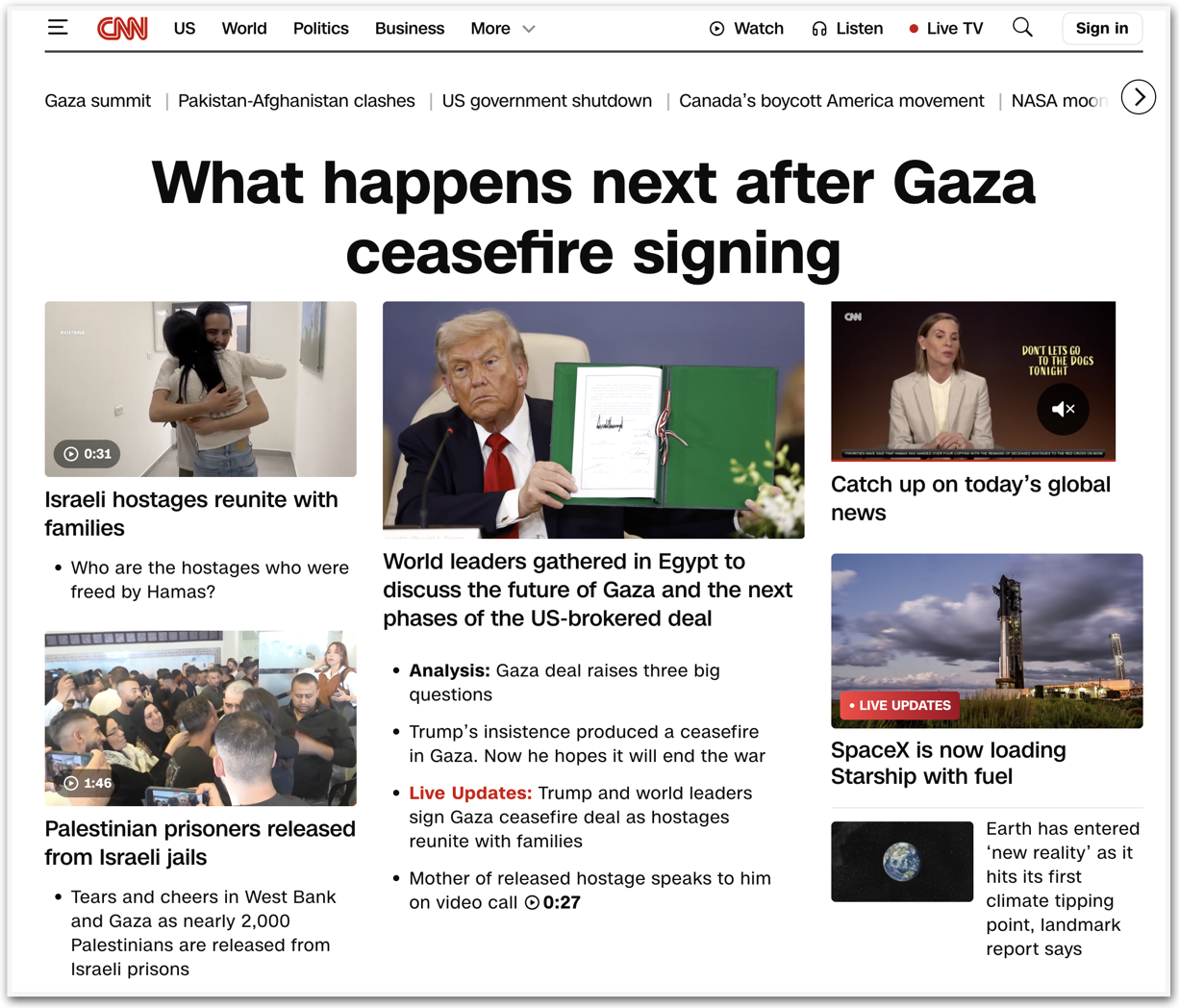 Para a CNN, o cessar-fogo ainda traz perguntas que “permanecem sem respostas” e a cúpula sobre Gaza “deixa pendências”.