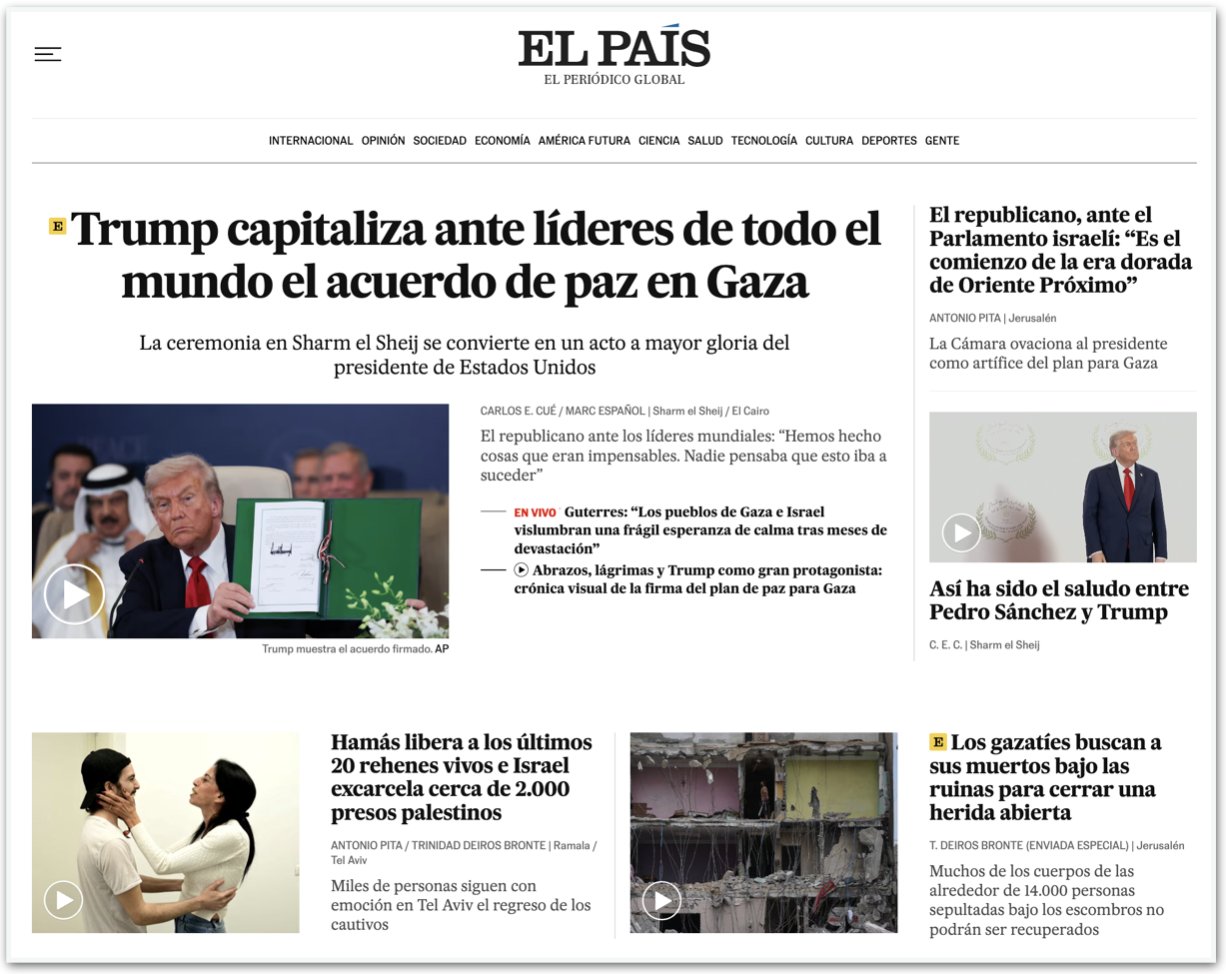 Já o jornal espanhol El País destacou o fortalecimento de Trump ao conseguir o cessar-fogo. Para o veículo, o republicano conquistou e “capitalizou” sua “maior glória”.