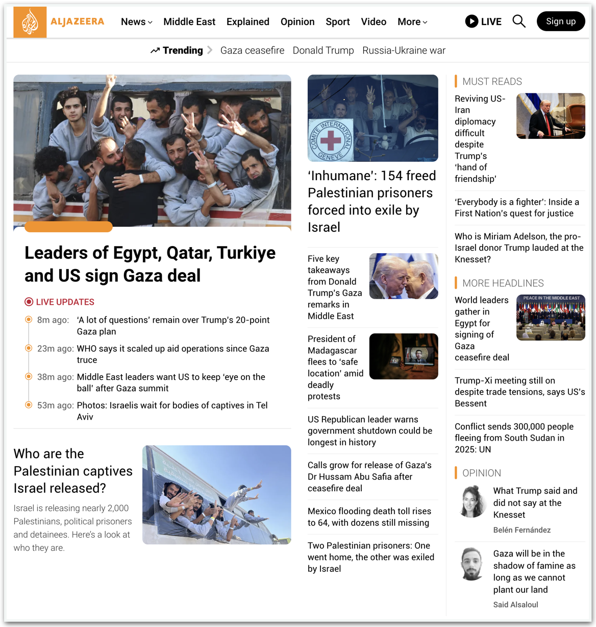 A Al Jazeera destacou o que considera ser um sentimento “agridoce” na devolução de prisioneiros palestinos por Israel. Segundo o veículo qatari, 154 palestinos libertados foram “forçados ao exílio por Israel”.