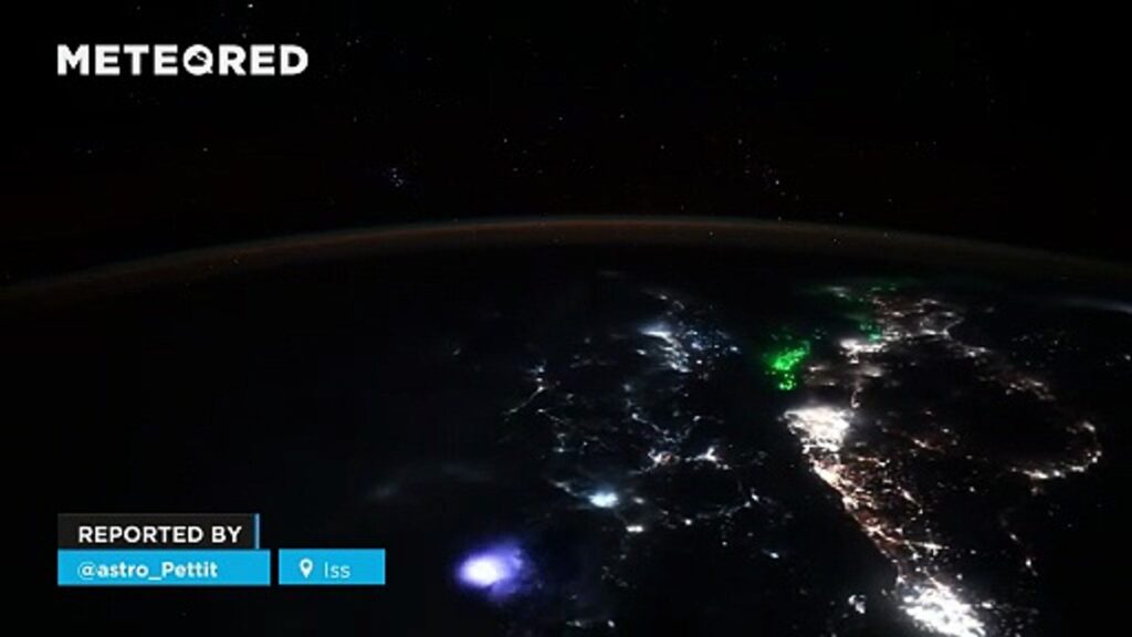 Da órbita da Terra, relâmpagos intermitentes aparecem como clarões rápidos que quebram a uniformidade do céu.