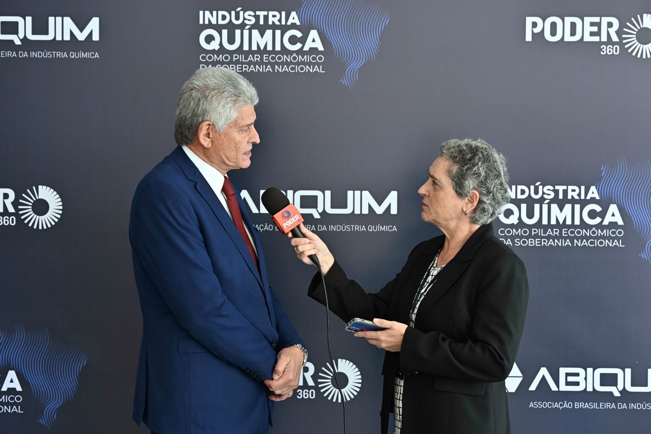 Deputado Flávio Nogueira (PT-PI) fala à repórter Simone Kafruni, do Poder360, no seminário “Indústria química como pilar econômico da soberania nacional”